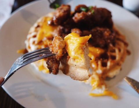 Food was GREAT! Service was GREAT! I love this place! I had the Cajun Benedict and my boyfriend had chicken and waffles. I had no complaints! My bf loved his chicken but wasn't a big fan of the waffle