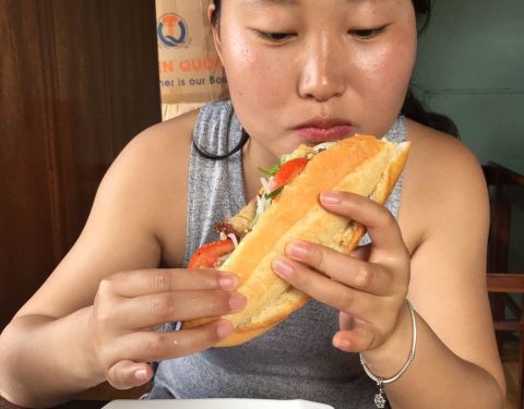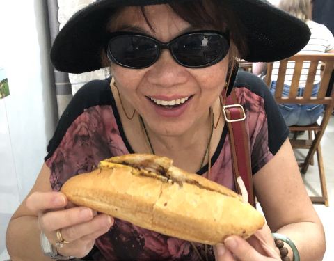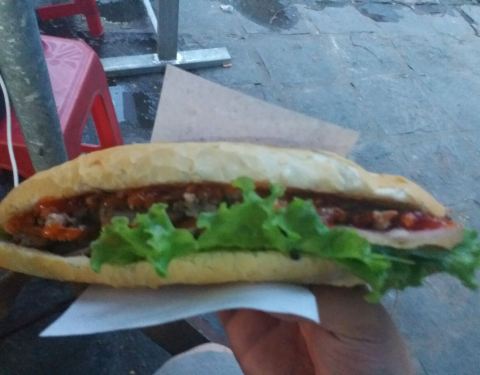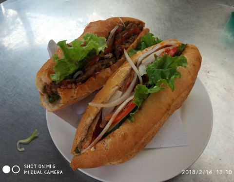 地方还算好找,就在出了古城的会安菜市场边上,周边环境就和国内小县城的菜市场差不多,老板娘一个人忙里忙外的也挺不容易,周边好多当地人来他家买看来也不差我们这些游客的生意。味道挺不错的,又便宜,走累了,买个法棍来打个尖也不错。