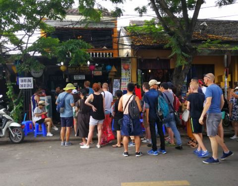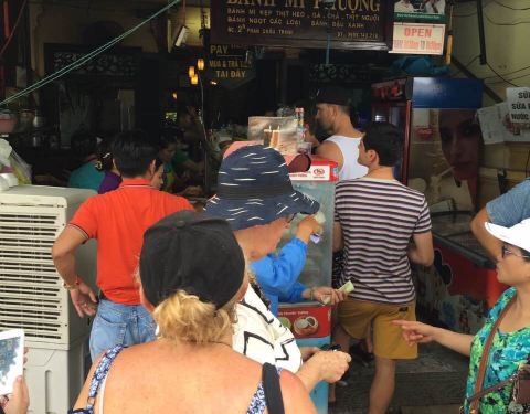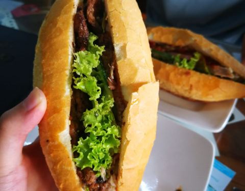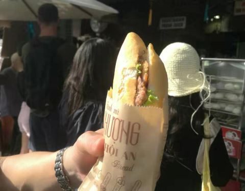 Banh Mi Phuong的法棍在会安当地很出名,许多当地人也围着买。法棍有不同的口味可选,分量给得很多,肉汁酱汁很香。