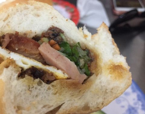 我通常叫它是法式三文治,越南只是把它给改良了,做法很简单,就夹上鸡蛋,肉,木瓜,洋葱等等,不吃辣的直接跟店家说,法包很脆,温温的口感,味道酱汁配得恰到好处,然后再点上一杯咖啡,搭配完美,不吃会后悔。我通常叫它是法式三文治,越南只是把它给改良了,做法很简单,就夹上鸡蛋,肉,木瓜,洋葱等等,不吃辣的直接跟店家说,法包很脆,温温的口感,味道酱汁配得恰到好处,然后再点上一杯咖啡,搭配完美,不吃会后悔。