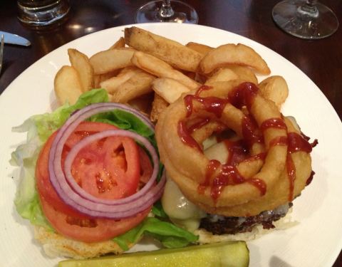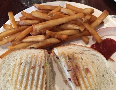 ...,中午在这里吃的,餐馆很大,我们点的火鸡三明治和牛肉汉堡味道还都可以,中午只有这些简单的可以吃