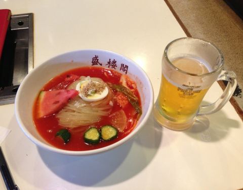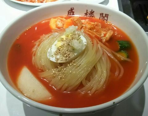 初盛楼閣。冷麺中辛。程よい辛さ。