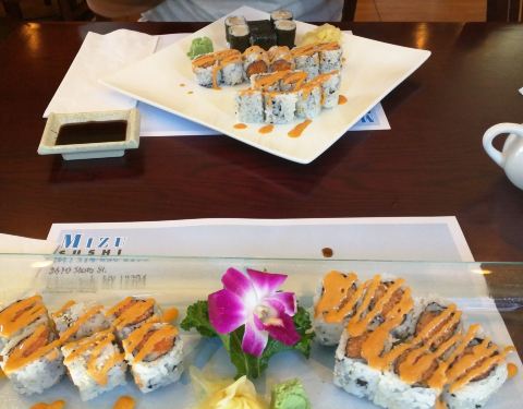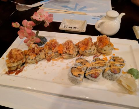 Great lunch deals with delicious sushi rolls. I loved the spicy tuna, spicy salmon, and yellowtail rolls.