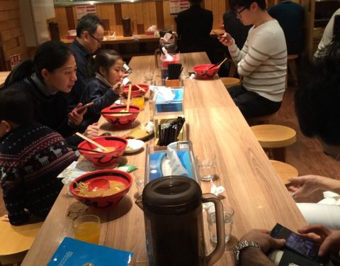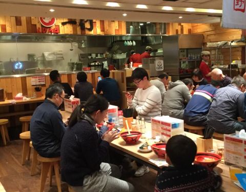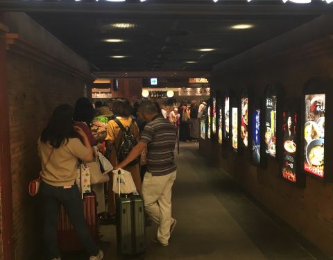 - 食客不少。拉面的汤料相当浓,口味不错。其实这里是机场航站楼的拉面一条街。但基本只有三个品种