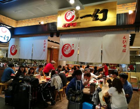 一幻面店在新千岁机场三层,食品街的开始。什么时间都能看到排队等候人群,幸好等候时间不是很长。特点是各种虾味拉面,煎饺。价格是一条街中最优惠的,每份780日元,可以用西瓜卡、银联结账。唯一不足的同时也是日本拉面的通病就是有些咸。