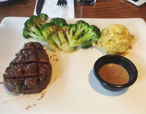 ...直觉得菲力牛排味道还不错,但是纽约客牛排肉更嫩,会有肉质迸发出来,连带着油花,在嘴里融化的感觉