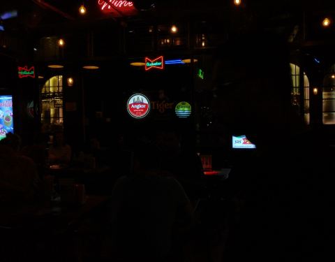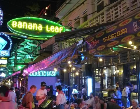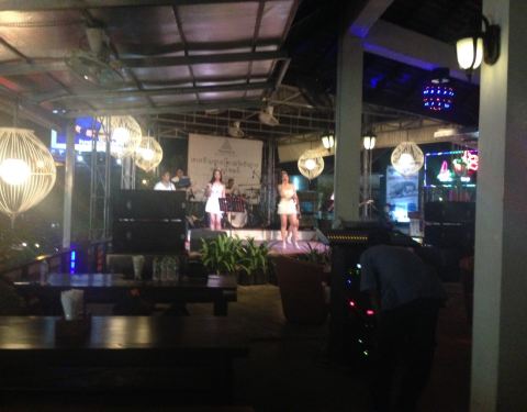 这是一家位于柬埔寨暹粒酒吧一条街上的饭店,整个酒吧饭店非常的热闹,门口有专门的驻唱歌手在,这里驻唱和其他的酒吧不同,这边的主唱是直接在马路上就可以看到的,所以吸引了很多游人进来喝酒和吃饭。 我也坐在...这是一家位于柬埔寨暹粒酒吧一条街上的饭店,整个酒吧饭店非常的热闹,门口有专门的驻唱歌手在,这里驻唱和其他的酒吧不同,这边的主唱是直接在马路上就可以看到的,所以吸引了很多游人进来喝酒和吃饭。 我也坐在这里听了两首歌,点了杯啤酒,喝了喝里面的饭菜是多少,有些贵了,但是感受一下这个环境还是挺好的。
