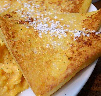 小貳樓早午餐共有二杯飲料,又叫健康第一杯和續杯第二杯,我们夫妻俩都選了牧草汁,牧草汁沒什麼草味,就像果汁一樣有點甜,第二杯我們都選了《美式咖啡》,是杯不黑的咖啡來的,煎的焦香的法式吐司,好吃!!看起來像是玉米的炒蛋也很好吃~