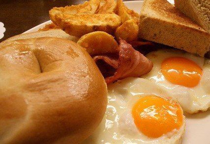 走的是溫馨的裝潢路線,雖然不是每個座位都有舒適的沙發,但整體感覺搭配起來還是令人喜愛。巨無霸套餐看菜单介紹起來好像多得恐怖,實際上看來倒還好,內容物有原味的貝果、德國臘腸、烤培根、烤厚片、雙煎蛋和炸脆薯。