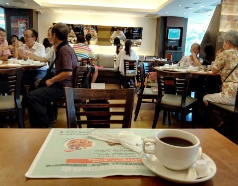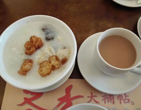 台北有名的港式茶餐厅,台北的人气早餐店,108台币的早餐套餐可谓超值,包括一份主食,一份点心加一杯饮料,两个人点的是皮蛋鱼片粥和三鲜炒板条,小吃点的是炸春卷和凤爪,冰咖啡和热奶茶,味道都不错,还有叉烧...台北有名的港式茶餐厅,台北的人气早餐店,108台币的早餐套餐可谓超值,包括一份主食,一份点心加一杯饮料,两个人点的是皮蛋鱼片粥和三鲜炒板条,小吃点的是炸春卷和凤爪,冰咖啡和热奶茶,味道都不错,还有叉烧包啊面条什么的可以选择,十点到的店里人气很旺,座无虚席。