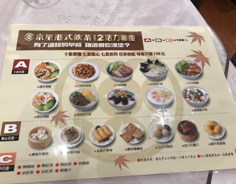- 台北有名的港式茶餐厅,台北的人气早餐店,108台币的早餐套餐可谓超值,包括一份主食,一份点心加...