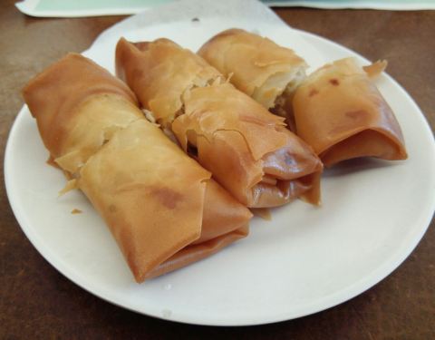 台北有名的港式茶餐厅,台北的人气早餐店,108台币的早餐套餐可谓超值,包括一份主食,一份点心加一杯饮料,两个人点的是皮蛋鱼片粥和三鲜炒板条,小吃点的是炸春卷和凤爪,冰咖啡和热奶茶,味道都不错,还有叉烧包啊面条什么的可以选择,十点到的店里人气很旺,座无虚席。