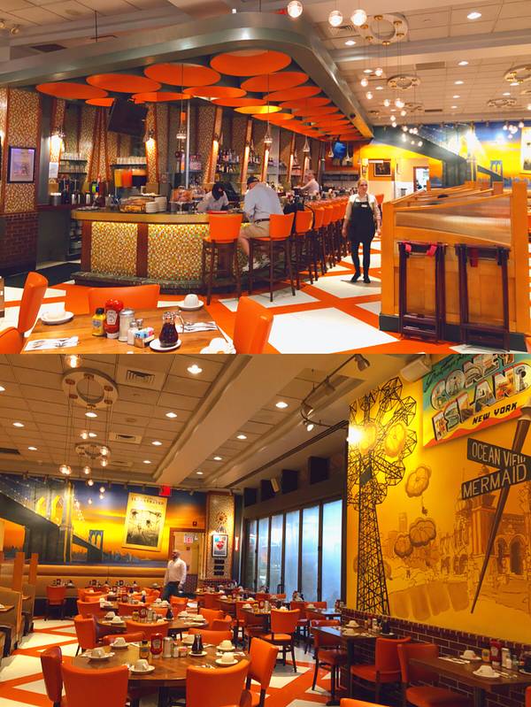 这次来 纽约 前几天就住在时报广场边上,离这家很近,店面很大,满眼橘色的装饰,看上去心情很是愉悦。传统的美式brunch,分量超足,味道也不错,配的烤土豆很可口。配上热巧开启一天的好心...地址:1515 Broadway