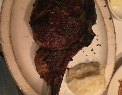 Food portions were tremendous. I mean what steak house can boast a 38oz bone in rib eye? Problem was although it was a great cut it lacked flavor. Even adding salt to it it was bland.