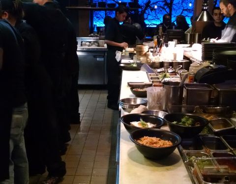 Definitely get the short rib. It was really really solid along with the Brussels sprouts, beef satay and calamari salad. It was also cool to sit at the kitchen bar and watch them cook it all.