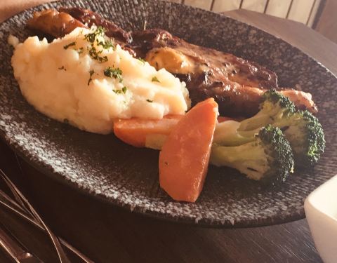 Spent the night at the Hilton after a week of skiing Whistler, so we were exhausted. Dinner in the hotel was a simple solution and boy were we pleased to find such a wonderful meal. My son had the steam and they were very accommodating with his special requests for sides. The rest of us had salmon, seafood and chorizo pasta and Italian flat bread. All were extremely tasty.