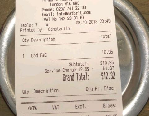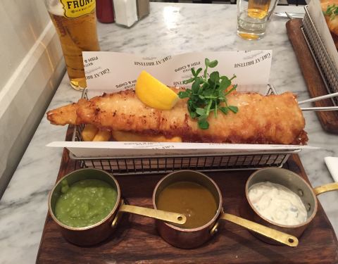 来英国怎么也要吃下薯条加鳕鱼啊,最后选了这家,味道不错,价格合理,服务非常好。鳕鱼绝对新鲜,好大一块,味道呢中规中矩没有龙虾卷那么惊艳,不过苏格兰蛋很好吃我连搭配的菜丝都吃了。