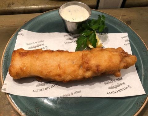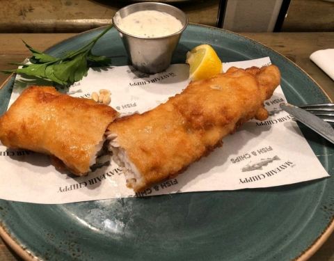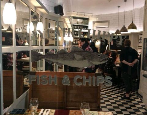网上搜到的网红店,门口直接就贴着fish & chips.炸鱼配薯条的意思,环境很不错,服务员很有礼貌,一份炸鱼12英镑多些。