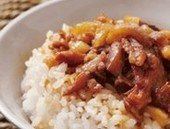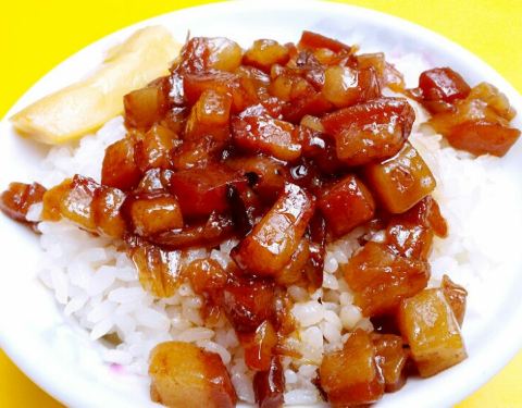 - 严格来说这不是普通一般的卤肉饭,小丁小块充满了胶原蛋白的猪皮与脂肪,扒饭时饭几乎是整口直接滑进嘴里的
