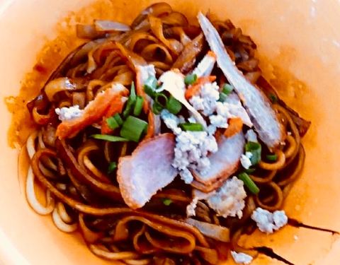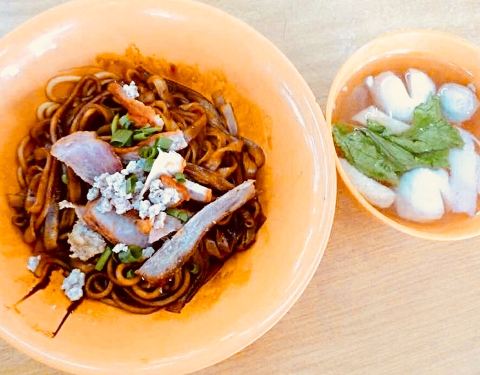 这里的粿条汤有分煮水和干捞两种,配鳗鱼丸、肉碎片、蔬菜和炒蒜米;汤头鲜甜,每样配料简单但又很好吃,而且全是店主手工制成。如果还要更豪华的粿条汤,还可以加料,比如加入猪肠头和鸭犍子,更加好吃。