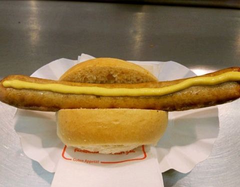 这家店专门做德国香肠,还有德国的热狗,不过这里的热狗面包太小的,香肠很长,番茄酱放的超级多,香肠可以叫店里面给你先切好的。