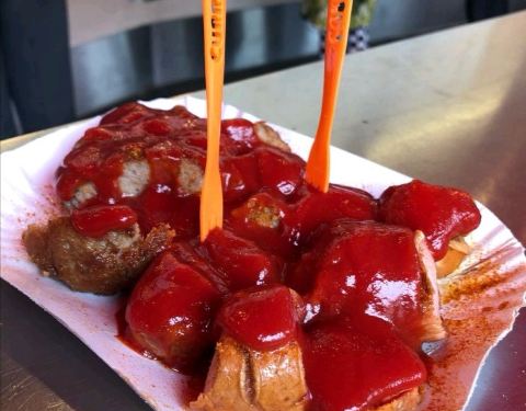 Curry Baude就位于具有历史意义的Gesundbrunnen地铁站出口旁,这家店的历史能追溯到1989年呢。虽然柏林遍地都是咖喱香肠,可是每家香肠都有自己的独特之道。Baude也不例外,他们的香肠都由自己的秘方食谱所做成,连香肠上的番茄酱都是自己制作的,因此吸引了很多人特地到此品尝。