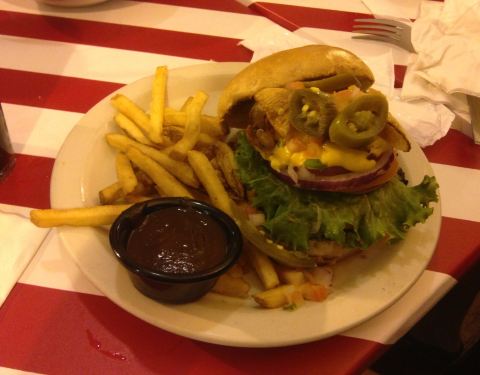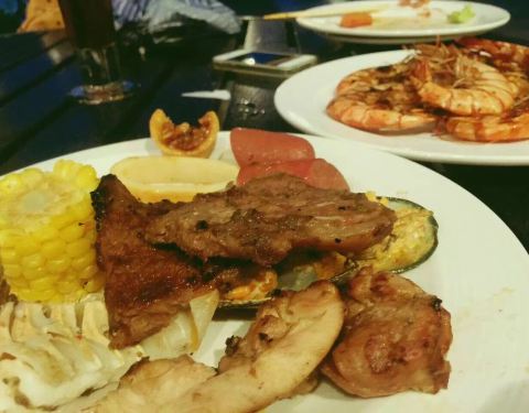 - 很美国哦。外面打碟的也很有激情,大家一起嗨。 味道当然没得说。餐食量比较大,要看准了点