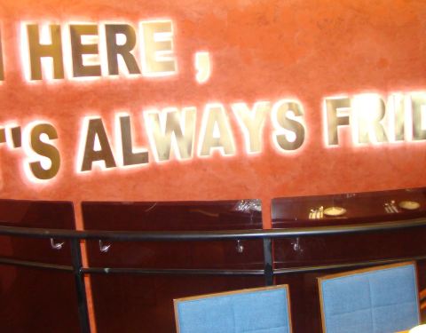 星期五餐厅是一家世界连锁美式主题餐厅,这家店非常有特色,店里面的气氛非常活跃,因此在这里用餐你绝对不会感觉到无聊,里面的烤猪排是招牌菜,非常值得推荐。