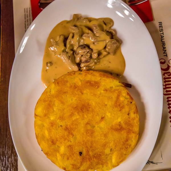 ...比較有代表性的瑞士本地菜,除了乳酪火鍋,基本瑞士菜餚都可以吃得到,老軍火庫改造的餐廳,挺有特色