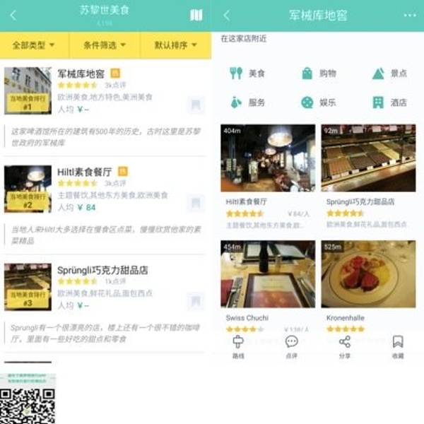 军械库地窖真的不负盛名,在梦想旅行APP中苏黎世美食排行中排名第一,有近3000达人在这里留下点评,哪些美食最美味,可以参考一下点评哦。在这家店附近也有很多美食餐厅,吃货们可以动手在APP里搜搜附近,都不远~