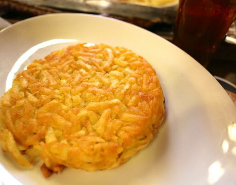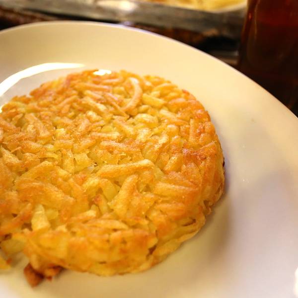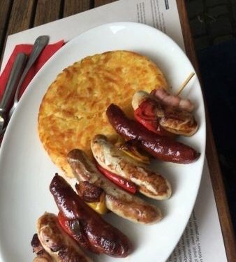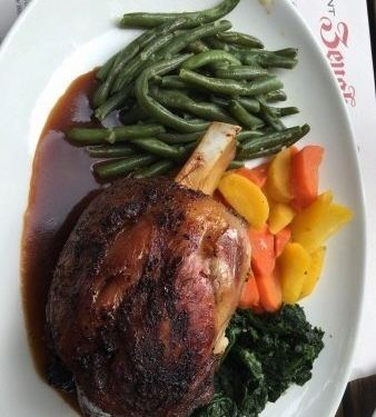 这里是原来用来放兵器的仓库,现在改成了餐厅,比较有名,中午去的,进去吓一跳,好大一个仓库基本全部座满,位置有点挤,有点闹,上菜还算快。 推荐德国肘子配土豆,肘子不肥,够酥也蛮入味的;那个苏黎世小牛肉配土豆饼是土豆饼不错,香,但是那个牛肉就一般啦,不够嫩,虽然量还是不算,放盘里还有余下的用小锅装着,但是味道一般,不推荐,火腿量大,口味还行。