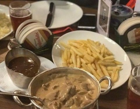 苏黎世 老牌的餐厅🍴,居然是由军械库改造的。点不装饰还保留了些许军事器械,环境还挺特别的。招牌菜是 苏黎世 小牛肉,混合了一些奶酪🧀️蹲在一个小炖盅,搭配了煎土豆,还真的是蛮好吃的!!它们家的啤酒🍺也是值得尝一尝,丝毫没有啤酒的苦味,喝在酒里的感觉很细腻与爽滑。当我们问到服务员会不会喝醉的时候,他很自豪地说喝10瓶都没有问题。哈哈,还真的是很幽默搞笑!2.经典芝士火锅