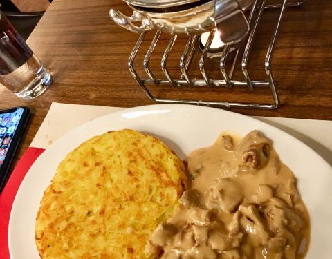 苏黎世 老牌的餐厅🍴,居然是由军械库改造的。点不装饰还保留了些许军事器械,环境还挺特别的。招牌菜是 苏黎世 小牛肉,混合了一些奶酪🧀️蹲在一个小炖盅,搭配了煎土豆,还真的是蛮好吃...1. 老牌餐厅军械库