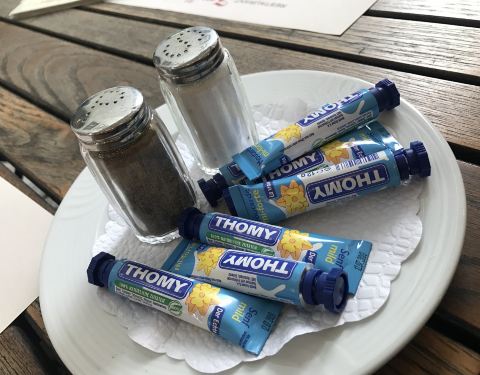 东西算好吃 就是口味有点咸 回去狂喝水 推荐苏黎世小牛肉 很棒 则家店生意很好很好很好 所以服务感觉一般~也可能是我自己英文太烂不过是有中文菜单的~值得一去☝️