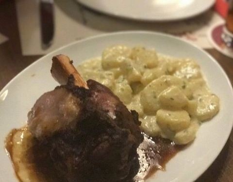 推荐德国肘子配土豆,肘子不肥,够酥也蛮入味的
