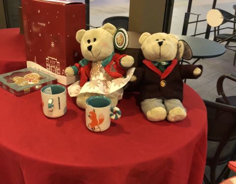 金虹桥楼下,每次来这边的商场星爸爸也是必须来坐一坐啦!冬天最适合星爸爸热饮啦!外加杯子也是超美的!还有圣诞熊熊买一送一哦!划算划算!