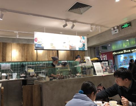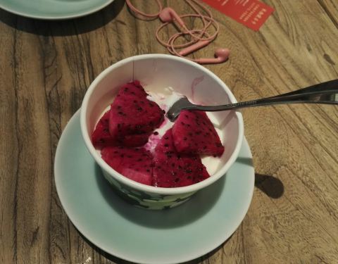过来休息一下儿,点了他们家的酸奶菜菜,里面放火龙果、奇异果、蓝莓和各种谷物的那款,上面还浇了一点巧克力酱。一份酸奶菜菜里面的配料还是很丰富的,所以口感也很不错,里面的酸奶味道醇厚,搭配水果和坚果挺...过来休息一下儿,点了他们家的酸奶菜菜,里面放火龙果、奇异果、蓝莓和各种谷物的那款,上面还浇了一点巧克力酱。一份酸奶菜菜里面的配料还是很丰富的,所以口感也很不错,里面的酸奶味道醇厚,搭配水果和坚果挺好吃的。