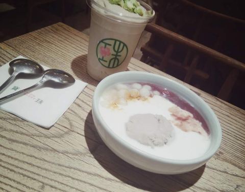 百联滨江店交通很方便,在第一层,很好找,店里人不多,一会儿店员就端上了百合荔枝冰酪,甜品造型很可爱,颜值颇高,清甜的荔枝,脆糯的百合配上奶味十足的爱玉冰,真的好吃啊,可惜现在季节过了,吃不到了,要等明年了。