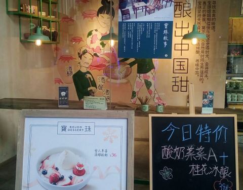 自己其实并不怎便偏爱宝珠奶酪的,但是近期推出的牛油果雪酿自己喜欢到不行,之前在公司一直叫的外卖吃,正巧经过宝珠,毫不犹豫的就坐了下来。 环境还是一贯的装修风格,每家门店基本都是雷同的,店面不大,挺小的。 尽管外面是寒冬,依然挡不住我还是想要一杯牛油果雪酿的心,还是点了一杯这个饮料。可惜拿上来的饮料不是之前叫的那种,在公司这边喝的是,蹭蹭绿的牛油果,无论是外观还是口味都是非常棒的。但是这边的牛油果用的是熟透的果子,导致整杯饮料像是烂掉的颜色,口感也不是很好,有种涩嘴的感觉。 朋友还点了一碗我不知道名字的东西,也不怎么好吃,以后不会再来。