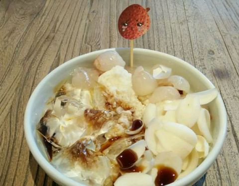 很好找,店里人不多,一会儿店员就端上了百合荔枝冰酪,甜品造型很可爱,颜值颇高,清甜的荔枝,脆糯...