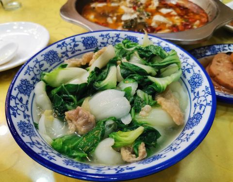 在汤山汤泉路一条全是饭馆的街上,能够生存并生意不错,路边可以停车。门头很高,要上几个台阶。店铺其实不大,中午去居然还要等位。菜都是家常菜,但是份量很足,狮子头面粉多点所以个头很大。酸菜鱼鱼比酸菜多...在汤山汤泉路一条全是饭馆的街上,能够生存并生意不错,路边可以停车。门头很高,要上几个台阶。店铺其实不大,中午去居然还要等位。菜都是家常菜,但是份量很足,狮子头面粉多点所以个头很大。酸菜鱼鱼比酸菜多,口味还是不错的,鱼片很新鲜。蜜枣藕和大煮干丝都是他家特色,很不错。