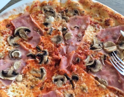 The most delicious pizza Prosciutto funghi. Unforgettable Carbonara! Wish I had my lunch time every day at Vapiano...