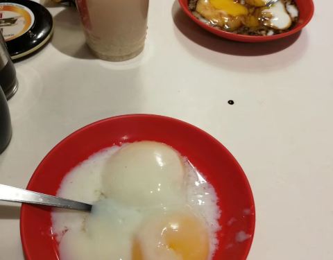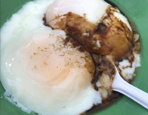 - 后来从在新加坡留学的闺蜜口中得知,原来半生蛋是要拌着酱油吃的,当时我是什么都没放直接吃了,哈哈