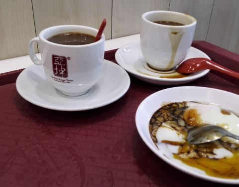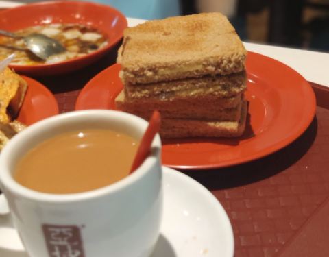亚坤的早餐是一定要试试的,亚坤的早餐基本就是几款,套餐是吐司+两个半生鸡蛋+咖啡(奶茶),吐司有几种,有吐司夹黄油加椰浆,吐司黄油加糖,吐司夹芝士,有烤的,也有蒸的。烤的吐司,很薄,在吐司中割开一条隙缝夹上黄油,椰浆或芝士等,烤得半焦的吐司加上黄油,香香脆脆的,挺好吃的。半生鸡蛋,自己按口味加豉油、胡椒粉,搅拌好,有点腥,但也很滑。咖啡就偏甜