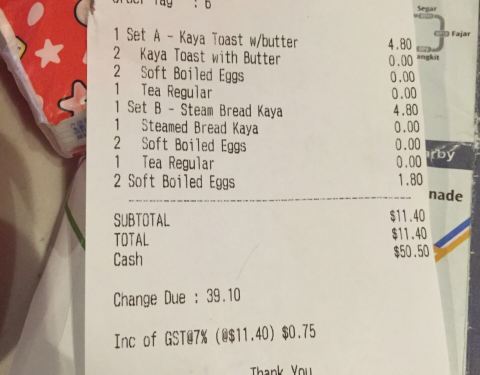 - 价格算是非常亲民了,不愧是国民早餐啊!到了新加坡当然要来尝一下国民早餐啦