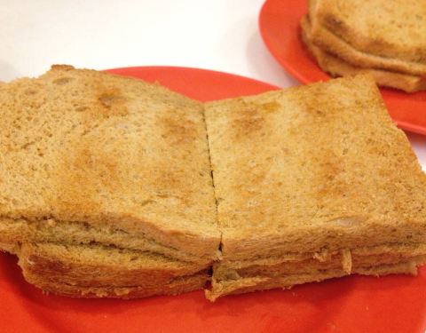 - ...很薄,在吐司中割开一条隙缝夹上黄油,椰浆或芝士等,烤得半焦的吐司加上黄油,香香脆脆的,挺好吃的