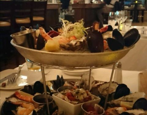 山羊法国菜餐厅还不错的哦,要了一个海鲜大拼盘,那个小牛排的味道是相当可以,就是牛排就只有一点点,三分熟,入口还比较的鲜美。