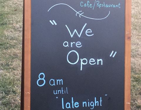 青年旅馆外的草地上很多木桌和长凳,就是用餐之处。每天早8:00开放,直至深夜