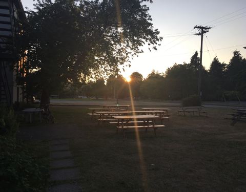 NSCS这家咖啡店,在HI Vancouver Jericho Beach这家青年旅馆的一楼。每天早8:00开放,直至深夜。青年旅馆外的草地上很多木桌和长凳,就是用餐之处。而草地上为棒球、足球、垒球而奔跑跳跃的人群,就是喝咖啡者的风景。
