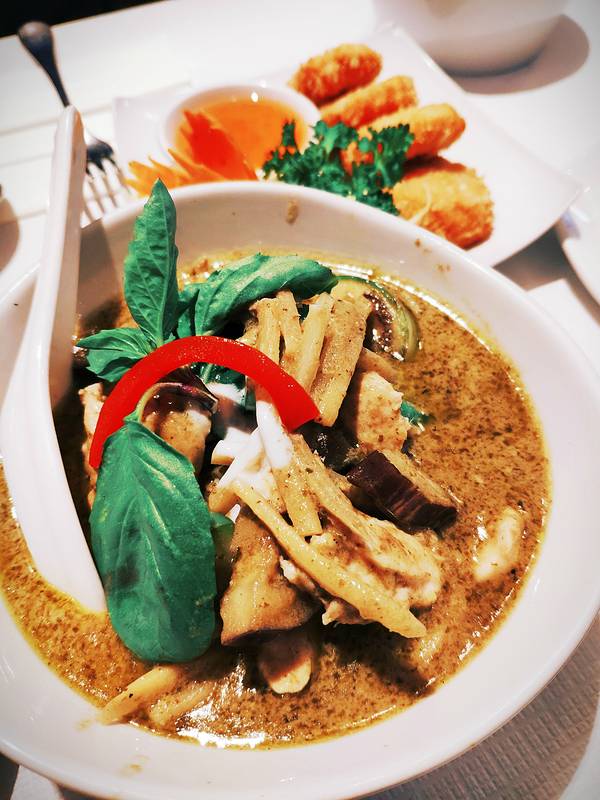 自然历史博物馆附近的一家餐厅,门面很不起眼,但是里面别有洞天。一点都不像东南亚菜,倒是很像西餐厅,很有情调。菜单非常丰富,但都是英文,而且菜名都是泰国菜的说法,看得眼花缭乱…「冬阴功汤」是推荐菜,很小一份但味道不错~里面有一只很大的虾,还有好多蘑菇~不太辣,偏酸~ 「泰式虾饼」看起来普通,但味道和口感很赞~虾肉很Q弹~ 「蛋炒饭」不是常规的蛋炒饭,米饭混着碎煎蛋和菜叶,可以选鸡肉猪肉牛肉和虾~选了虾,虾蛮多的,唯一比较大的菜量~ 「绿咖喱鸡」蛮地道的味道,只不过量很小,小小一碗~ 「英式早餐茶」这边饮品价格很实惠,很大一壶可以自行加奶加糖,才2镑多,味道也不错~两个人吃了四百多块,在英国算是蛮正常的价格~但因为是普通的泰国菜,就觉得略不值啦~